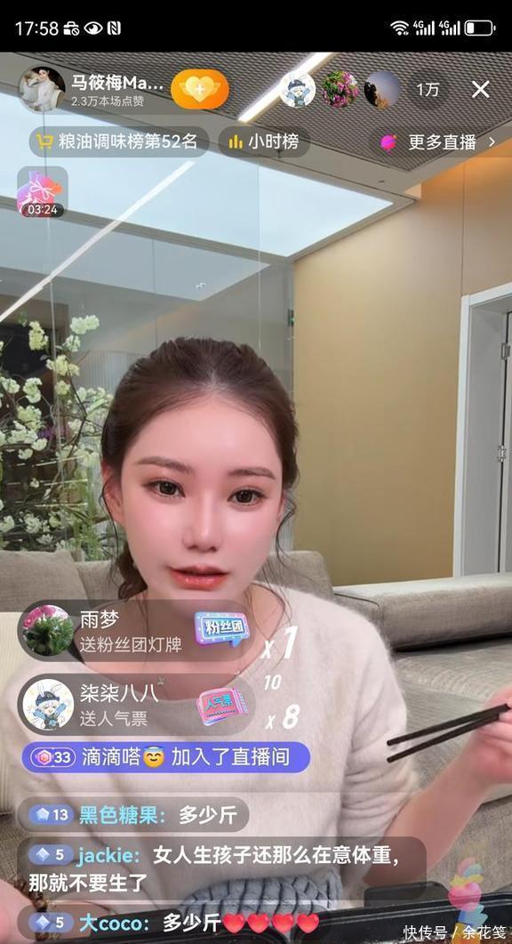 接着她还聊到体重,说自己现在这体重增长速度,真是这辈子都没经历过。她还特地提了一嘴,上飞机前在台湾称了体重,结果在飞机上一口东西没吃,落地回到北京再一称,体重居然还涨了不少,自己都觉得挺神奇的。