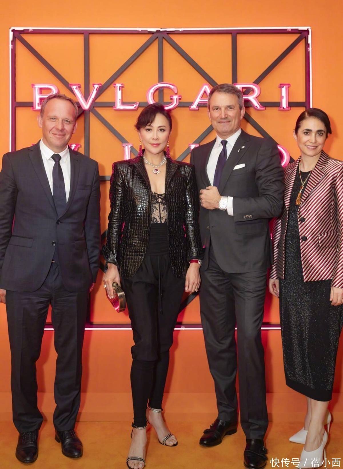 除了休闲风,刘嘉玲还尝试过性感摩登风格的打扮,上半身的黑色亮面皮质外套质感十足,哑光与亮面的材质碰撞让造型更具立体感,内搭黑色蕾丝打底,隐约的肌肤露肤度增添了女人味。